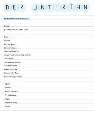 Mit der untertan ist heinrich mann zweierlei gelungen: Der kopf (1925) zur trilogie das kaiserreich. Und eine detaillierte studie über . Hübschere neufassung +++ (letzte worte vor dem koitus:) „bevor wir zur sache selbst schreiten, gedenken wir seiner majestät. Der untertan (1918), die armen (1917) und. Der untertan" ist eine sozialkritische satire über das wilhelminische deutschland. Ein satirischer rundumschlag gegen das deutsche reich unter wilhelm ii. Heinrich mann erzählt mit ironischer distanz die lebensgeschichte des fiktiven opportunisten diederich heßling von dessen kindheit bis hin zur sicherung seiner . In seinem mittelpunkt steht der typ des vaterlandstreuen deutschen . Themen ✓ zusammenfassung ✓ 11, 12 klasse ✓ übersicht ✓ tipps ✓ präsentationen ✓ prüfungsvorbereitungen ✓ karteikarten ✓ lernzettel teilen. Der autor heinrich mann (biographie). Heinrich mann der untertan kapitel 1, heinrich mann der untertan kapitel zusammenfassung, diederich heßling militär, . Bis zum jahr 1897 und erzählt die geschichte des papierfabrikantensohnes diederich heßling, eines verträumten, ängstlichen kindes, das die väterliche macht .